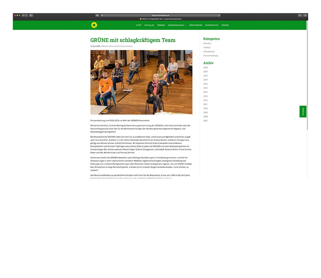 Die Seite wurde komplett neu konzipiert und als Content Management System umgesetzt. Der Ortsverband Fröndenberg präsentiert sich jetzt freundlicher, moderner und übersichtlicher.